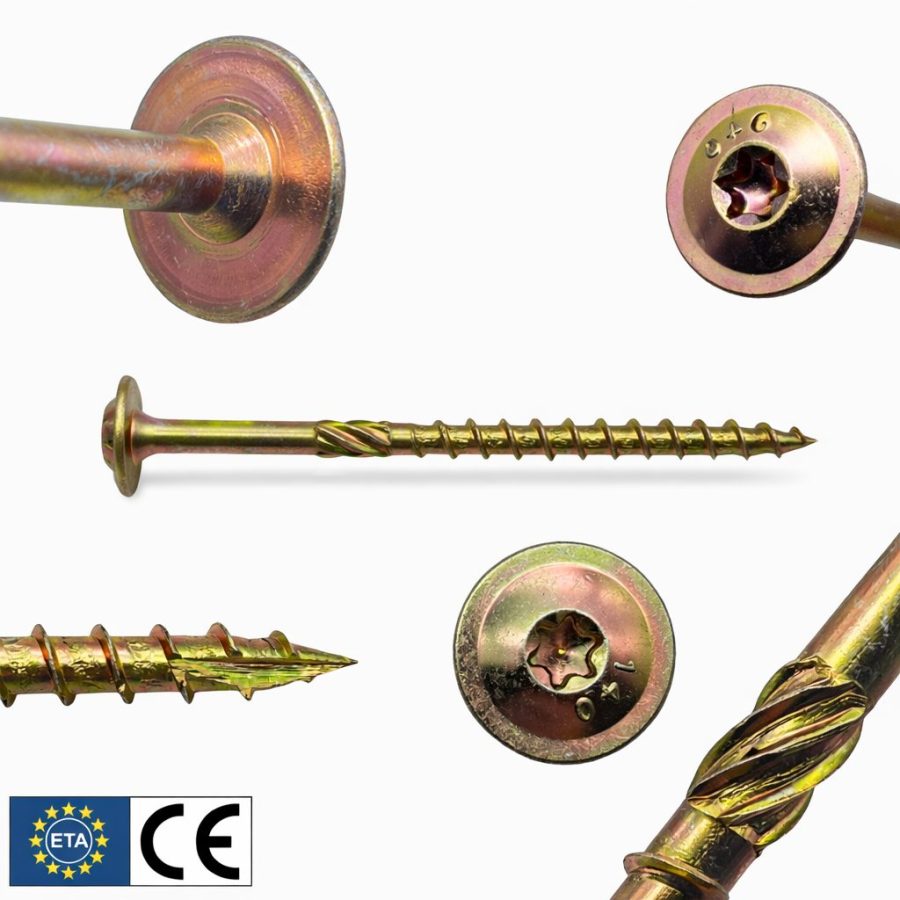 Besonders Tellerkopfschrauben Torx ETA verzinkt überzeugen durch hohe Belastbarkeit, einfache Verarbeitung und geprüfte Sicherheit im Holzbau.