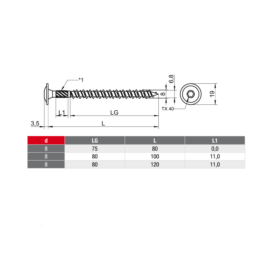 8×80 mm (50 Stück), 8×100 mm (50 Stück), 8×120 mm (50 Stück)